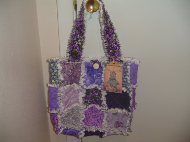 I'm still sewing! I've made several raggy totebags to sell. I can do any color combos you would like. These are purple/white, yellow/white, and purple/creme.